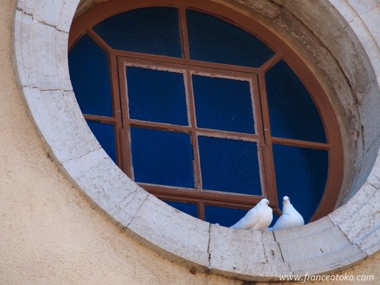 写真は南仏ポルクロールPorquerollesの白鳩の多い教会。