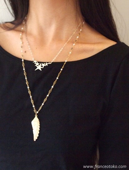 こちらはアメリカでゲットした長めのフェザーネックレスと