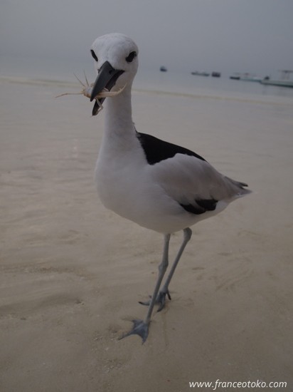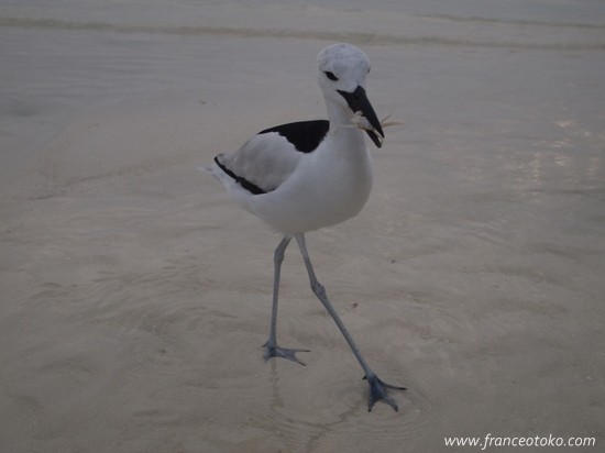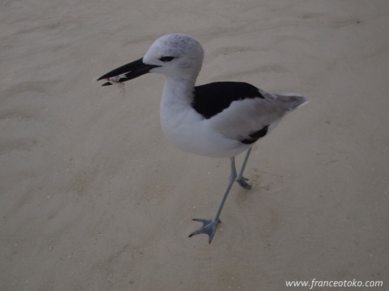 カニをじまんげにくわえたかわいらしいギャル鳥は